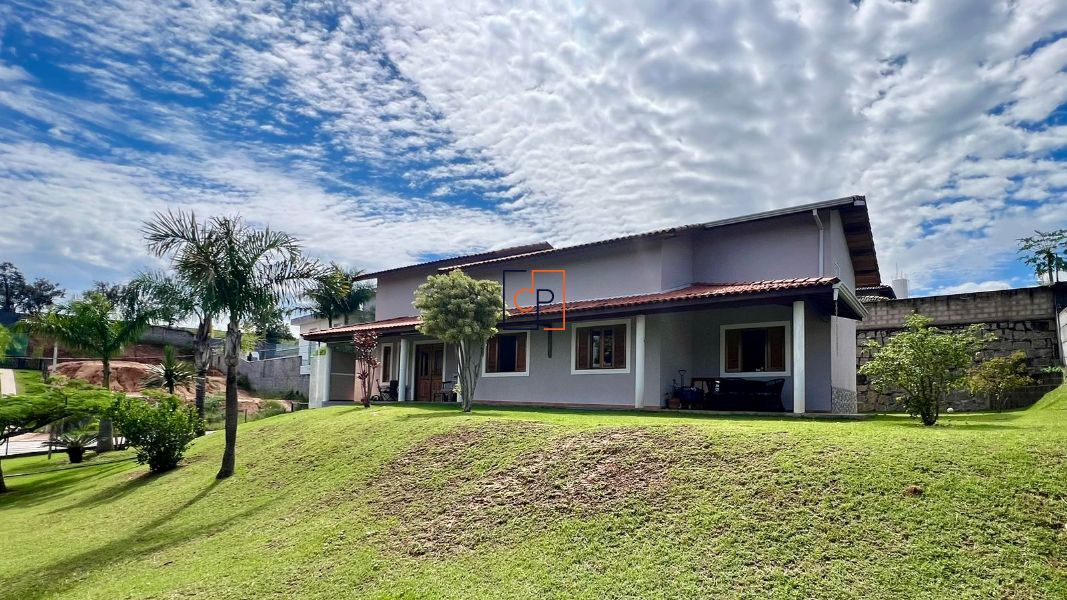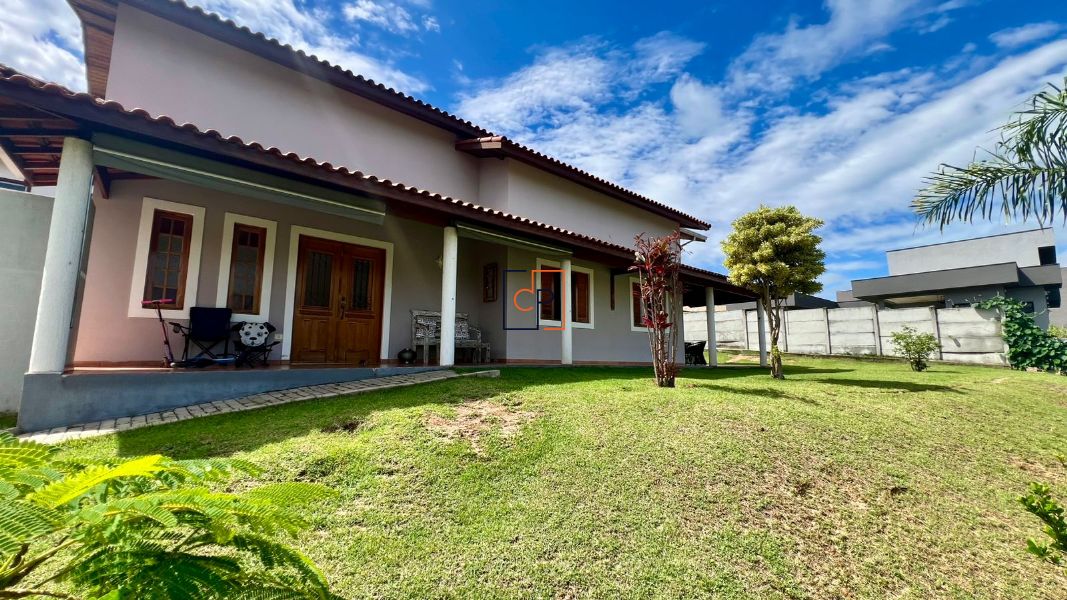 Linda casa térrea de esquina em condomínio fechado, com excelente localização e vista privilegiada para o bosque e as montanhas.