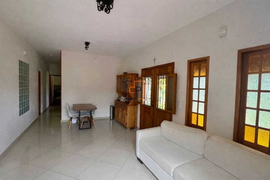 A casa dispõe de garagem descoberta para até 3 veículos, móveis planejados nos dormitórios e na cozinha e acabamentos de qualidade, com revestimentos em porcelanato, cerâmica e piso laminado. A frente toda avarandada e o imóvel rodeado por gramado garantem charme, conforto e contato com a natureza.